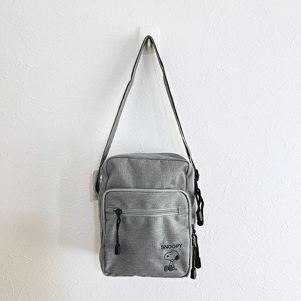 スヌーピーのミニショルダーバッグです♪スヌーピーの刺しゅうがワンポイントに入ってる♪マチ付きなので小ぶりながらも使いやすいサイズ感♪シンプルデザインで男女問わず使えます☆彡