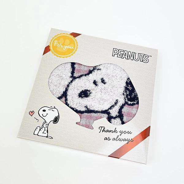 かわいいパッケージ入りで、挨拶や贈り物にぴったりなスヌーピーのタオルギフト。箱の裏にはちょっとしたメッセージも書くことができます♪