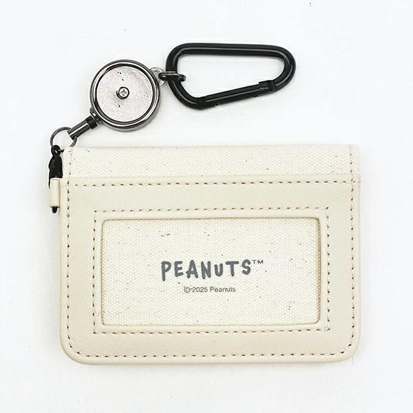 ポケットが複数ある二つ折りパスケースです。リール付きなのでカバンに付けたまま使えるので便利!!