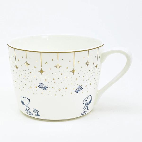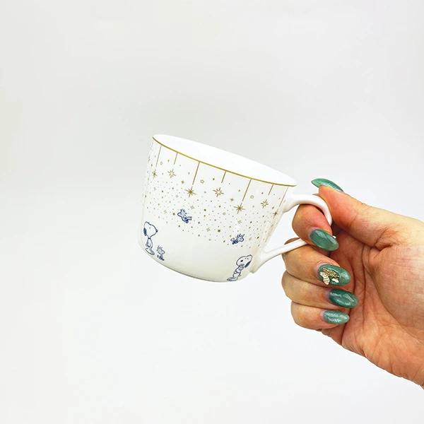 スヌーピーのボーンチャイナ製のマグカップです。永い歴史を持ち今でも世界の人々に愛されるナルミボーンチャイナの特長は、その美しさと丈夫さから王室や貴族などに重宝され、高価な陶磁器として使用されており、洗練された最高級のホテルやレストランにふさわしい特別な食器として選ばれています。料理の美しさや美味しさを最大限にひき出してくれるナルミボーンチャイナは、その造形美だけでなく、一般的な磁器と比べて強度が高く、毎日使う器としても安心して使用していただけます♪高級感があるデザインなので特別なディナーのお供にぴったり☆箱付きなのでスヌーピーの好きの方へのプレゼントにもおすすめです♪【容量:270ml】