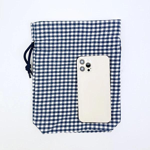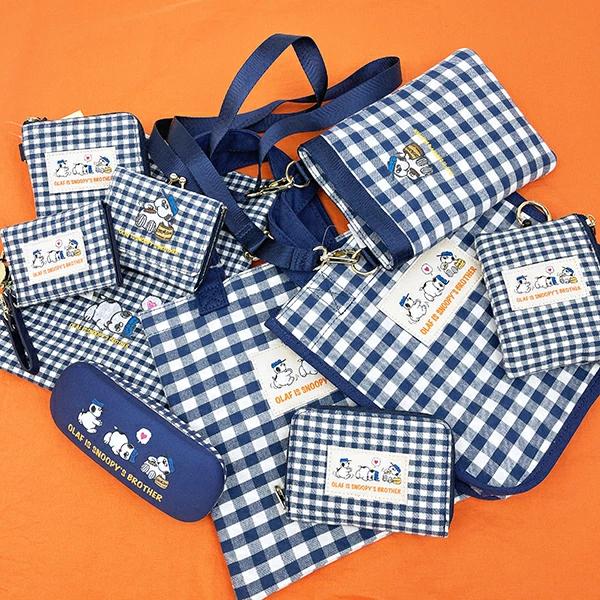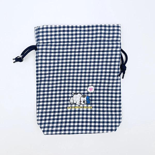 スヌーピーのきょうだい、オラフの巾着です♪ネイビーチェックのシンプルデザイン♪ほのぼのしたオラフが刺しゅうされていて、とっても可愛い♪同シリーズで集めたくなっちゃう☆彡