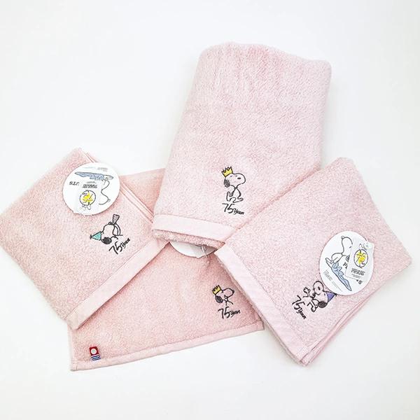 Snoopy PEANUTS 75th Anniversary Light Cotton Face Towel, Pink, Imabari, Made in Japan, Nishikawa