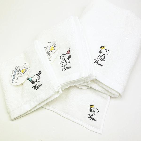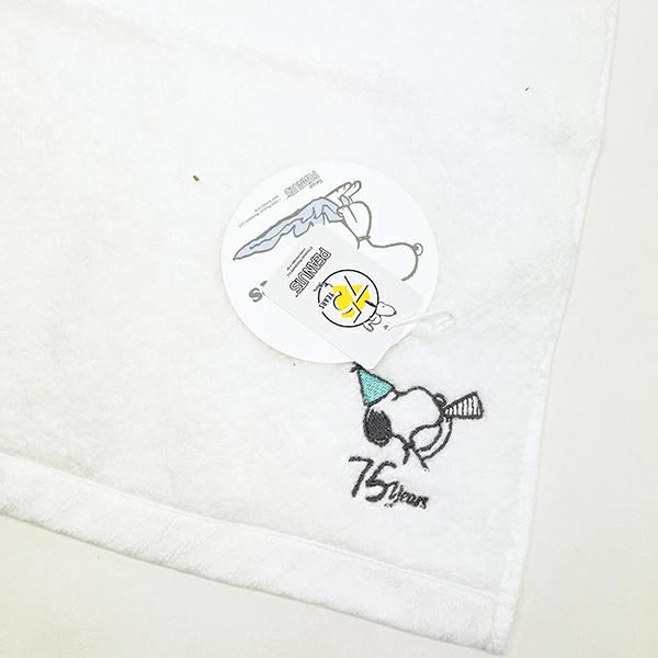 スヌーピーのウォッシュタオルです♪パーティー帽子を被ったスヌーピーの75周年限定デザインがとってもキュート♪綿毛のようにふわふわ柔らかく軽くて綿100%なので、お肌に優しく安心して使えますよ♪スヌーピーと一緒に周年をお祝いしましょう☆彡