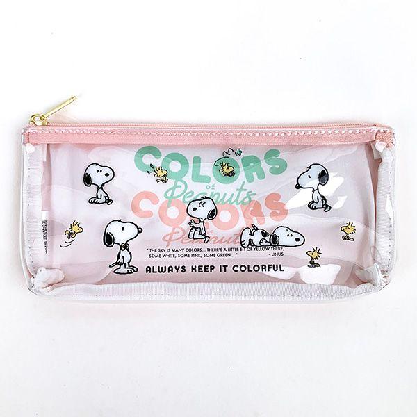 PEANUTSのなかまたちに、色とりどりの、チャーミングな個性を吹き込みました。正面の透明生地にはスヌーピーとウッドストック、内生地には「COLORSofPeanuts」のロゴがプリントされた、中身が透けて見える片面クリアタイプのペンケースです。◆サイズ:8cm×20cm×3cm