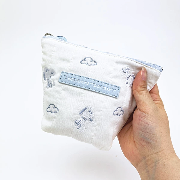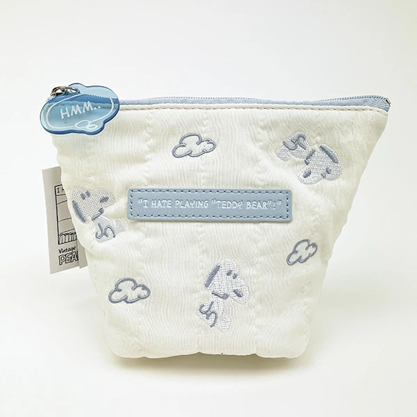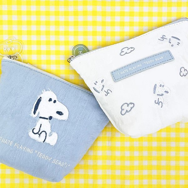 ちょっとした小物入れにちょうどいいスヌーピーの舟形ポーチです♪柔らかい手触りのキルティング生地&スヌーピーの刺繍がポイントです♪同シリーズで他アイテムたくさんあるので、揃えたくなっちゃう☆彡