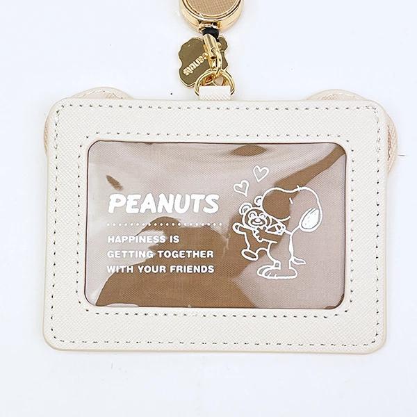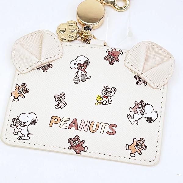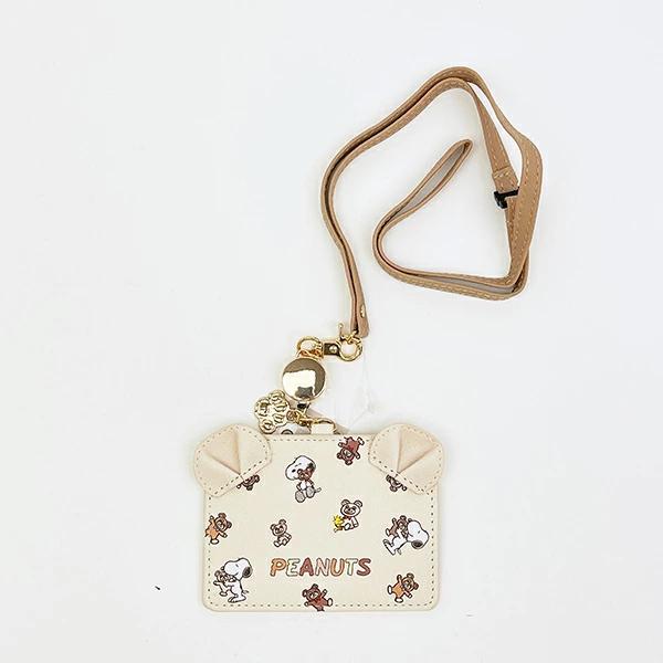 スヌーピーのリール付きカードホルダーです♪ベアをハグするスヌーピーが、とってもキュート♪くま耳付きデザイン♪リール付きなので、バッグに付けてサッと取り出せる☆彡