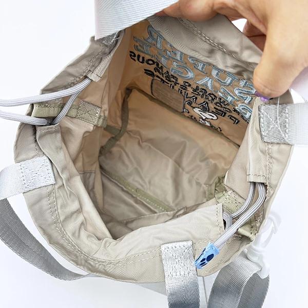 スヌーピーのショルダー巾着バッグです♪全面刺繍でダンスしているスヌーピーがとっても可愛い♪ショルダーストラップを外せば、巾着バッグやミニトートとしても使える2WAYデザイン♪内ポケットもあり、大活躍間違いなし☆彡