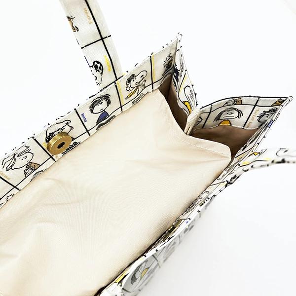 スヌーピーのちょっとそこまでのお出かけや、わんちゃんのお散歩、ランチトートなどメインにもサブにもなる使い勝手の良さが魅力の「スクエア」のトートバッグです。内側にポケットが付いていて便利◎艶感のあるラミネート加工は、汚れや水滴もサッと拭き取れるので毎日のおでかけに大活躍すること間違いなしです♪