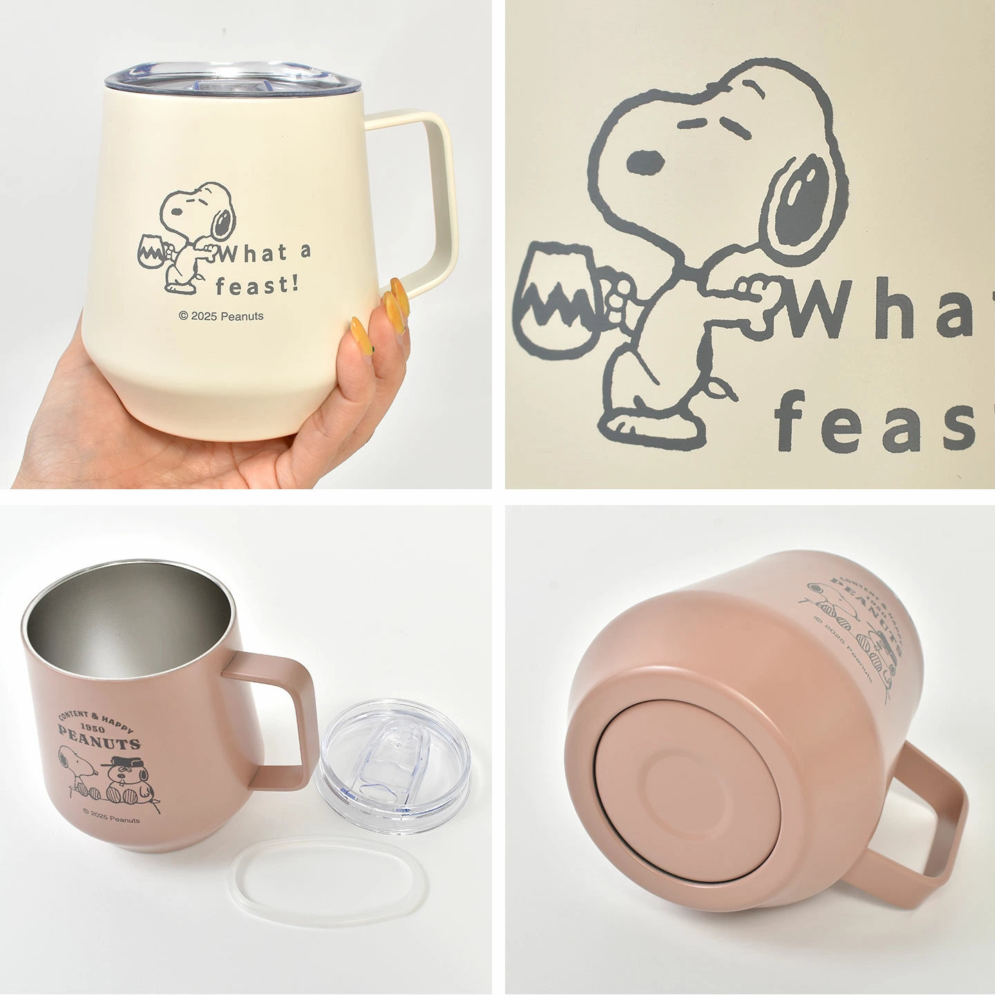 【ステンレスマグ】シンプルなスヌーピーのイラストがかわいい、保温・保冷機能付きのステンレスマグカップ。真空二重構造なので飲み物の温度を飲み頃でキープ!スライダー付きでそのまま飲める便利な蓋付きで、お家はもちろんオフィス用にも◎ボックス付きでプレゼントにもぴったりのアイテムです!