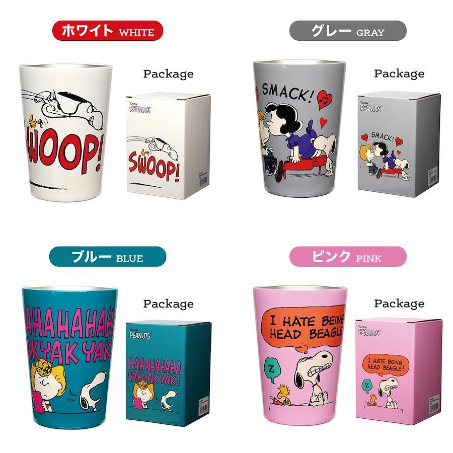【ステンレスタンブラー】ポップなカラーにスヌーピーのイラストが可愛い!保温・保冷効果があるステンレス製のタンブラー。温度を断熱する真空二重構造で、飲み物の温度を一定に保ってくれます。飲み物を直に注ぐのはもちろん、コンビニなどのドリンクカップをそのまま入れてドリンクホルダーとしても使っても便利!年齢性別を問わないデザインと可愛い外箱はプレゼントにも◎