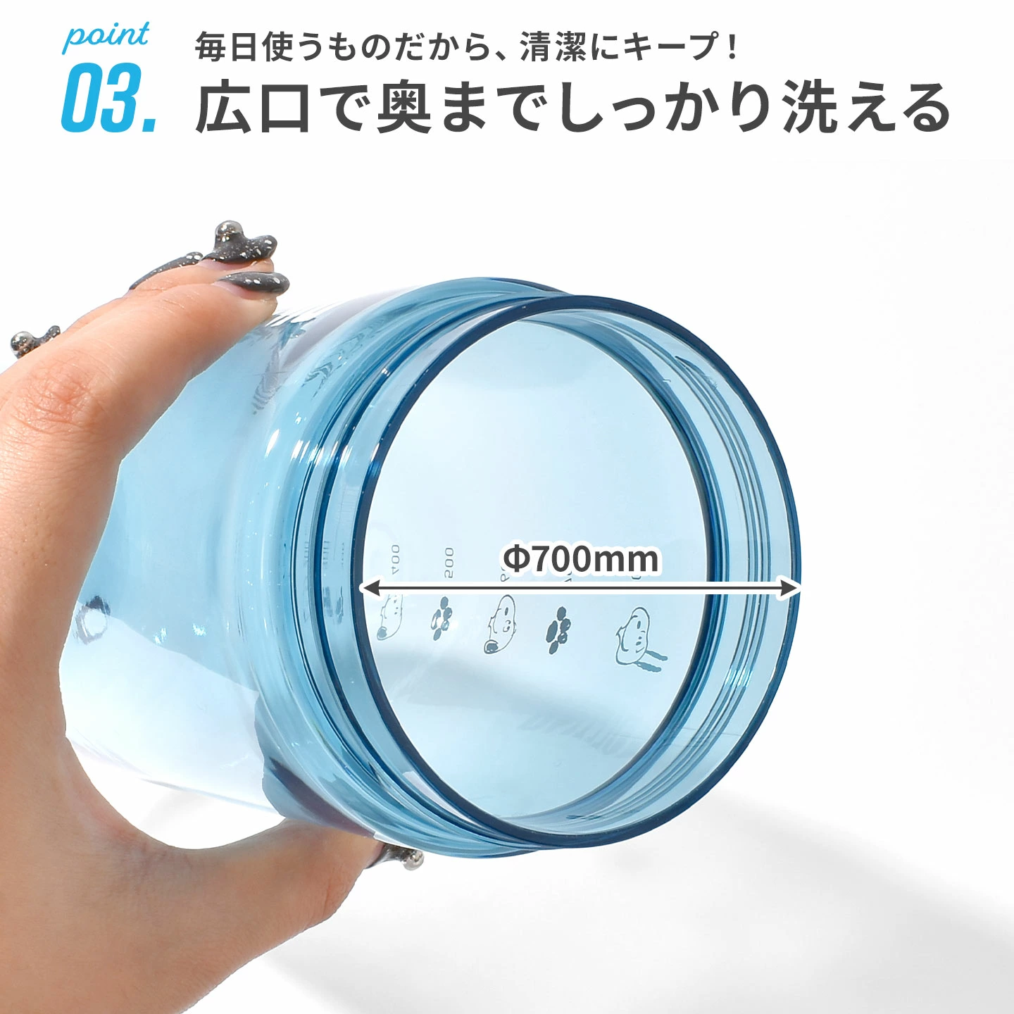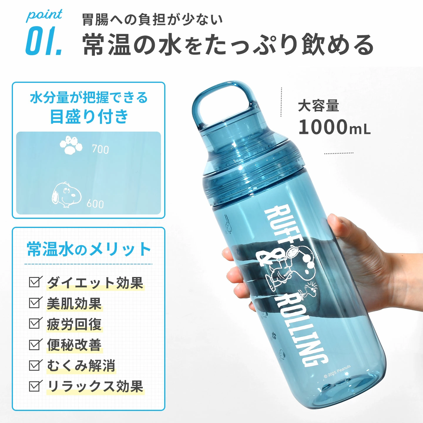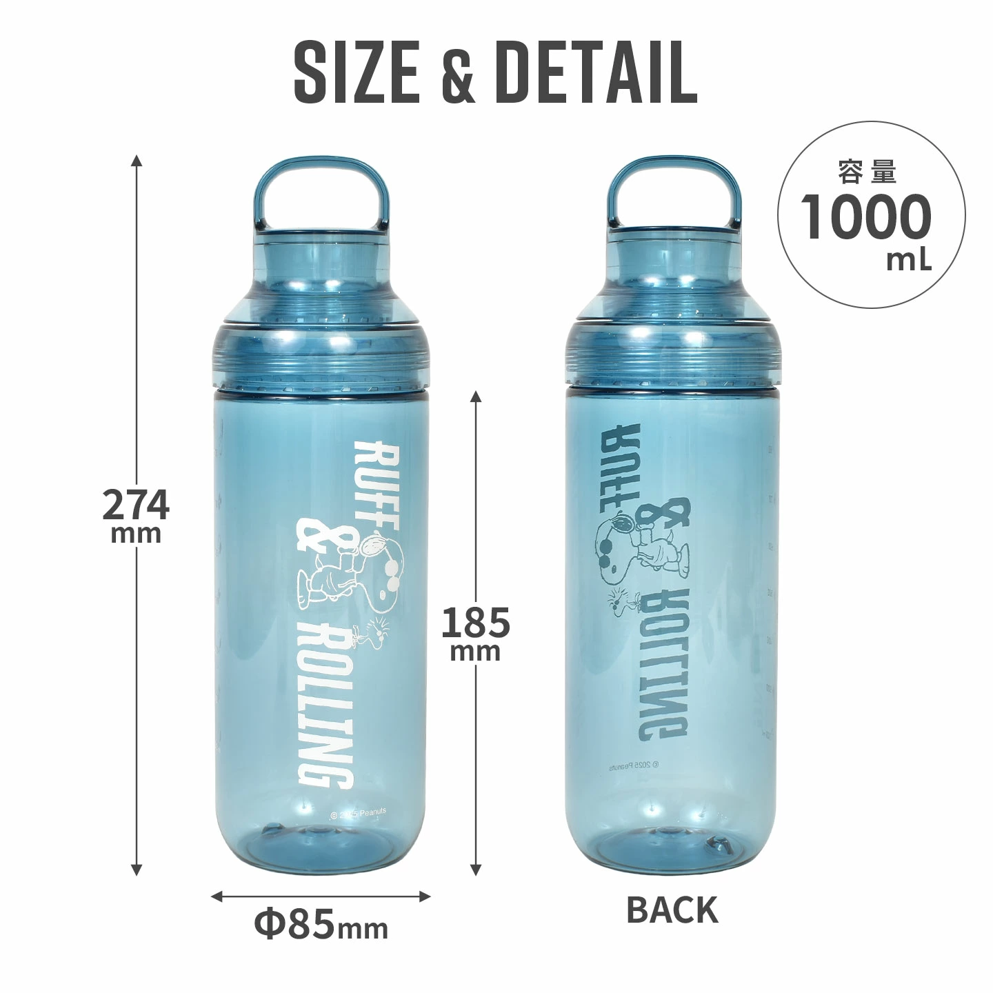 【クリアウォーターボトル1000ml】スヌーピーのデザインがかわいい、クリアウォーターボトル1000ml。軽くて丈夫だから持ち歩きやすく、目盛り付きでこまめな水分補給をサポートしてくれます♪ゴクゴク飲める直飲みタイプで、広口設計だから洗いやすいのも嬉しいポイント。会社や学校はもちろん、ジム・ヨガ・サウナなどの水分補給にもぴったりです!