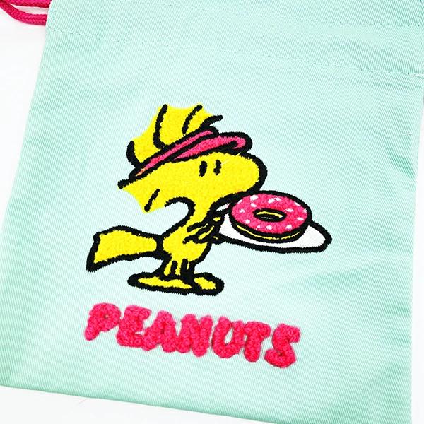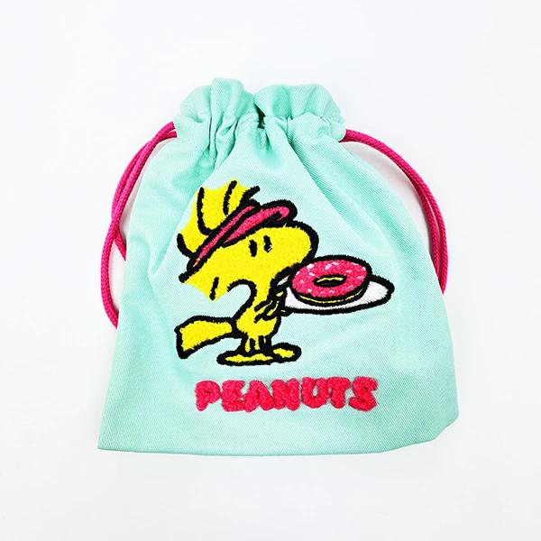 リップや目薬などちょっとした小物を入れやすいサイズの巾着です◎巾着と紐のカラー違いのデザインおしゃれで、ふわふわのサガラ刺繍がかわいい♪