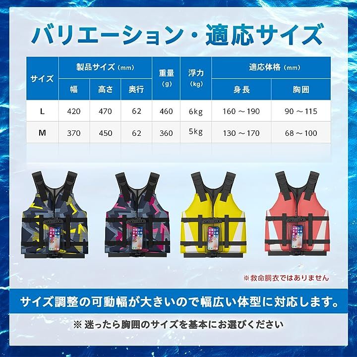・「JUST FIT」ベストは体にジャストフィットするので見た目がお洒落な上、浮力が発揮され着用していれば遊泳をサポートしてくれるのでより安全にマリンスポーツを楽しむことができます。