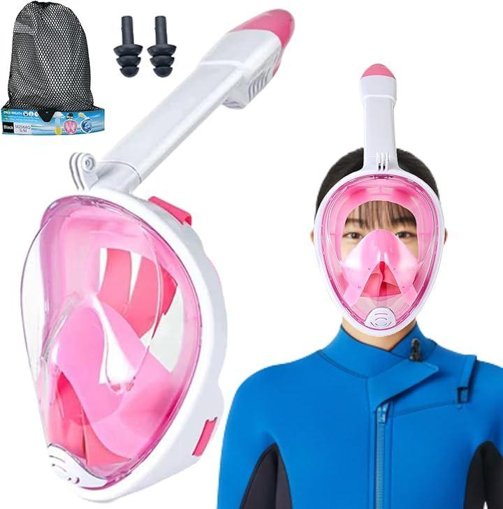 Snorkel Mask for Children and Women, Full Face, 180° Wide-Angle View, Anti-Fog, Breathable, Waterproof, Camera Mountable