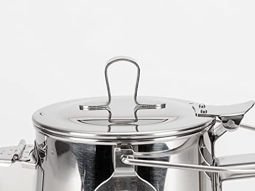 焚火や炭火の高カロリーな熱にも対応する縦長のクラシックなフォルムのケトルです。上部に吊り下げ用のハンドルも備えキャンプシーンに対応いたします。■サイズ:底辺/φ115×247mm■容量:1.8L■重量:690g■素材:ステンレス■原産国:中国