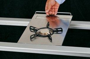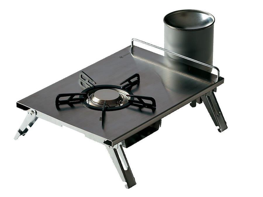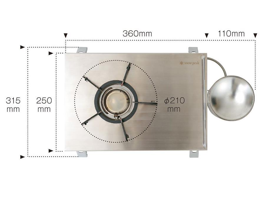 :従来アウトドア用のバーナーはガスカートリッジの真上に装着するタイプ、ホースで連結するタイプ、ボックスタイプに大まかに分類されてきました。スノーピークは卓上・プレートタイプのバーナーを開発しました。ガスカートリッジを倒立させて装着するスノーピークオリジナルの“液出し"を採用。安定した出力を持続します。最高出力3,000kcal/hを実現しています。卓上での使用はもちろん、脚を折畳んで、アイアングリルテーブルの1ユニットのスペースにセットすることができます。凹凸のないフラットな美しい調理スペースです。今まで以上に多彩なキッチンシステムを楽しむことができます。オートイグナイタ付でスムーズな着火が可能です。