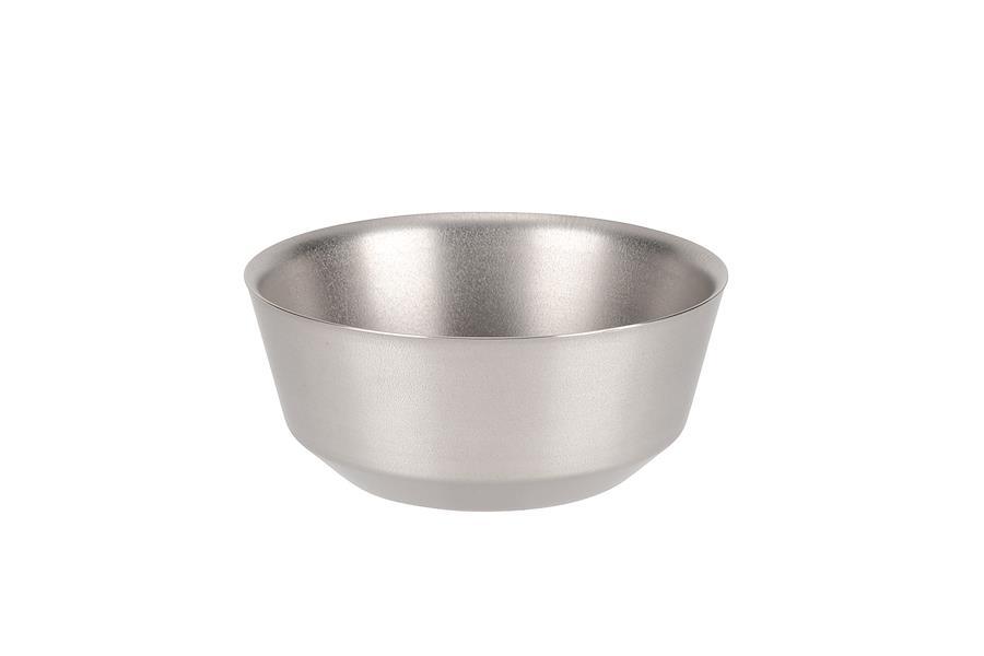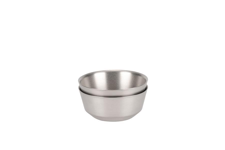 保温、保冷力に優れた中空二重構造のスタッキング可能な純チタン製ボウル。 二重構造のため熱いスープを注いでも、器が熱くなりすぎず、安心して持って食事をすることが可能です。 また、サイズ違い・同サイズ同士でもスタッキングすることが可能です。ボウルの内面と外面の形状は食事のしやすいよう形状が異なっており、内面はスプーンがより綺麗に沿う形に、外面はテーブルに置いている状態でもさっと持てるよう指が入る程度の傾斜をつけて設計されています。指のかかりやすさにもこだわっており 底面部分の凹みはちょうど指がかかる位置に角がくるよう配慮されており、しっかりとお椀をもって食べる食卓のシーンを想定し設計された、こだわりのアイテムです。