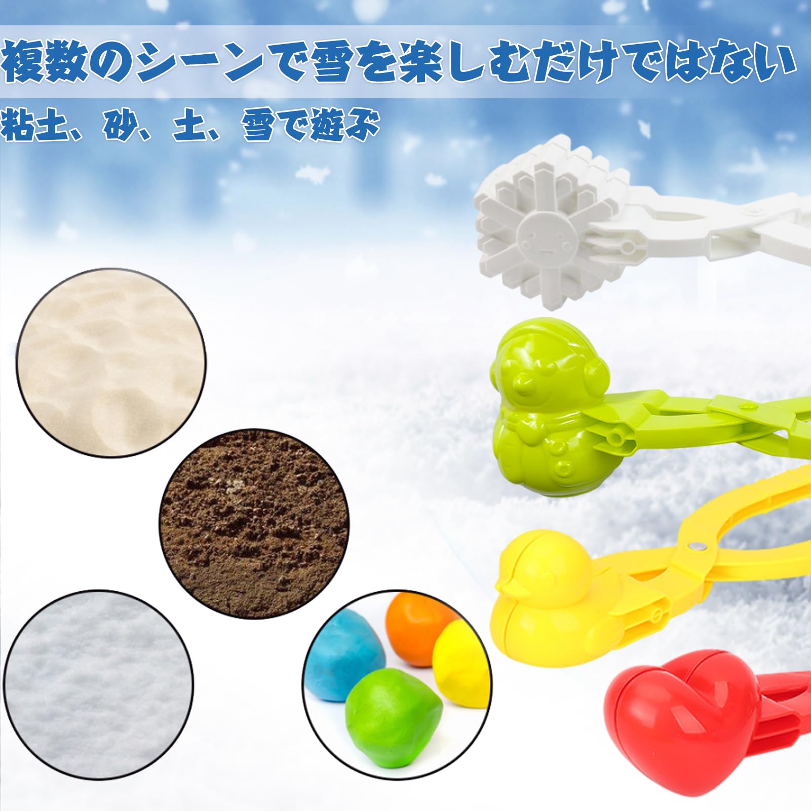 【雪遊びの定番】超面白い大型雪玉製造機!人体工学に基づいて設計されたスノーシューは、使いやすい。雪をすくうだけで簡単にかわいい雪玉を作ることができ、屋外での雪合戦の楽しさを素早く体験するとともに、子どもたちの創造性を促進するのに役立ちます! 【素材】高品質ABS材料を用いて作られ、材質は厚くて丈夫で耐久性があり、臭いがなく、バリがなく、手を傷つけない。子供たちが子供の頃を過ごすのに最適なおもちゃです! 【保護手】ハンドル付き雪玉製作器は幅広い年代の人に適しています。寒い冬には、屋外の氷雪の世界が最も子供たちに人気の場所で、この雪玉製造ツールは雪の冷たい凍傷から手を守り、子供と一緒に楽しく雪玉遊びをすることができます。 【プレゼントに】ハンドルは操作しやすく、冬には雪玉作りのほか、ビーチに砂の建物を建て、ビーチで雪玉合戦をするのにも適しています。子供たちが子供の頃を過ごすのに最適なおもちゃで、クリスマスやお正月、誕生日などに子供にプレゼントするのがおすすめです。 【商品仕様】4点セット:アヒル+雪だるま+ハート+雪花。カラー:カラーはランダムです。注意してください!