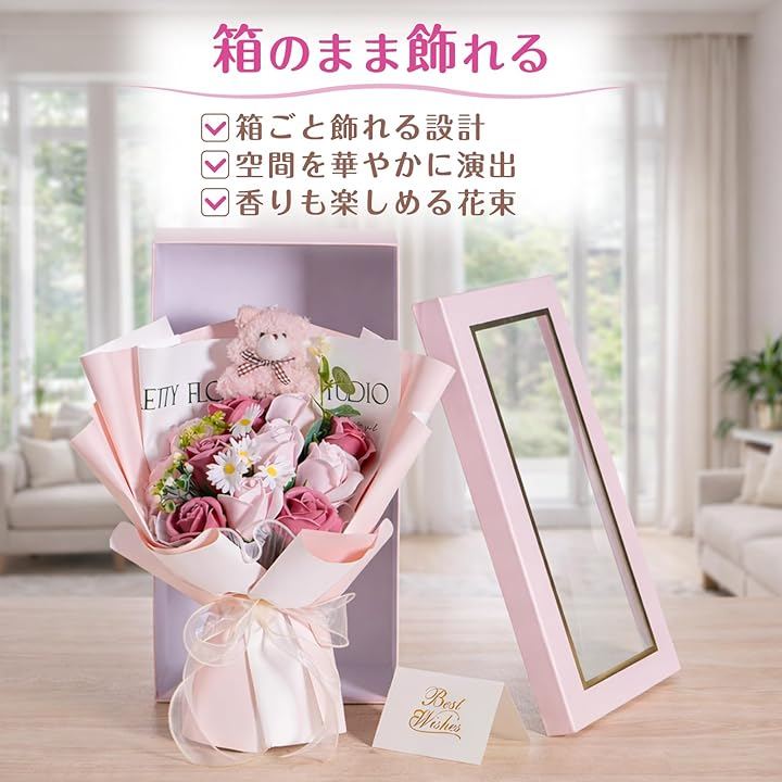 「そのまま飾れる」ギフトボックスにいれたままお部屋に飾ることができ、卒業、入学、誕生日、結婚記念日など、感謝や愛を伝えるプレゼントに最適です。