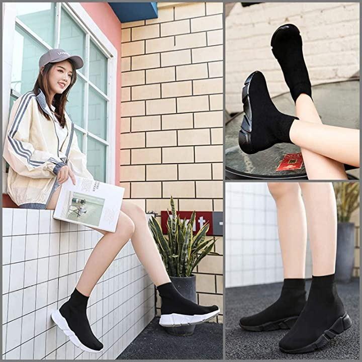 Sock Boots, Sock Sneakers, Women's, Thick Bottom, Lightweight, Stretch Material, Simple, Black, 23.5 cm