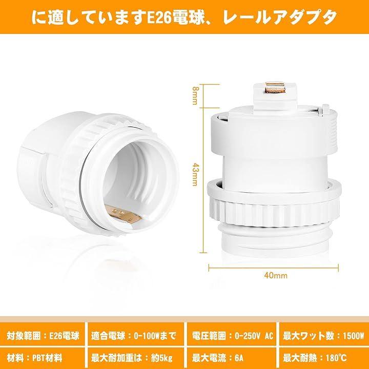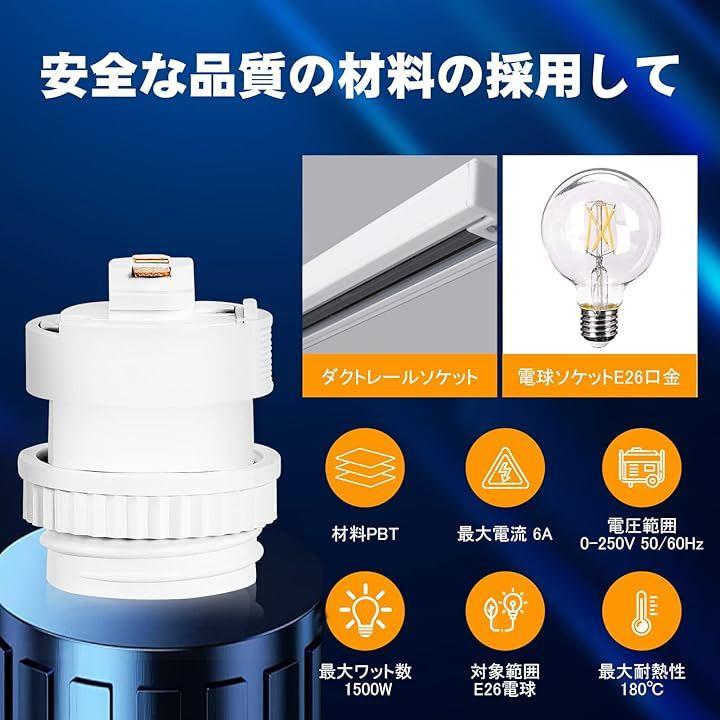 1、E26口金対応ダクトレール用ソケット,E26口金の電球であれば、お好みのLED電球、白熱電球をご使用いただけます。