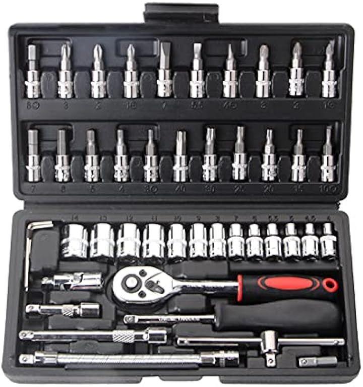 「とてもお得なソケットレンチセット」収納ケースを含めた全部で46セットのソケットレンチの組み合わせツールです。