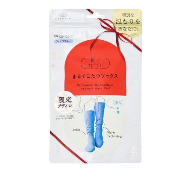製品の特徴●岡本 靴下サプリ まるでこたつソックス レディース ケーブル柄(限定デザイン)●冷えを感じたらさっと履くだけで、足先からふんわりぽかぽか。足先の冷えに、とにかくあたたかい「まるでこたつ」のようなソックスです。●ふんわり足先から包み込み、まるでこたつに入っているような心地よいあたたかさ。●岡本独自開発の特殊保温・発熱素材を使用し、よりあたたかい靴下を実現しました。●ひみつはくるぶしの温熱刺激。冷えを呼び込みやすい足首を発熱素材でカバー。●足首にある三陰交(ツボ)部分を温熱刺激(特許取得※)によって温めます。(※温熱刺激 特許第6043982号)●サイズ:23~25cm
