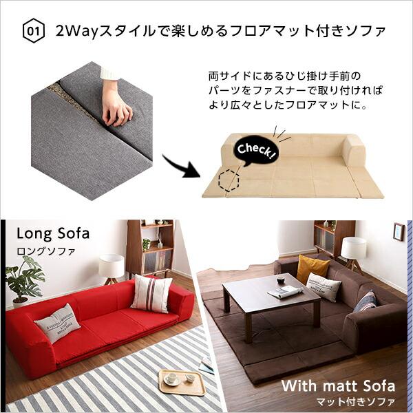 フロアマット付きソファMサイズ(幅200cm)お家で洗えるカバーリングタイプ | Plateau-プラトー-