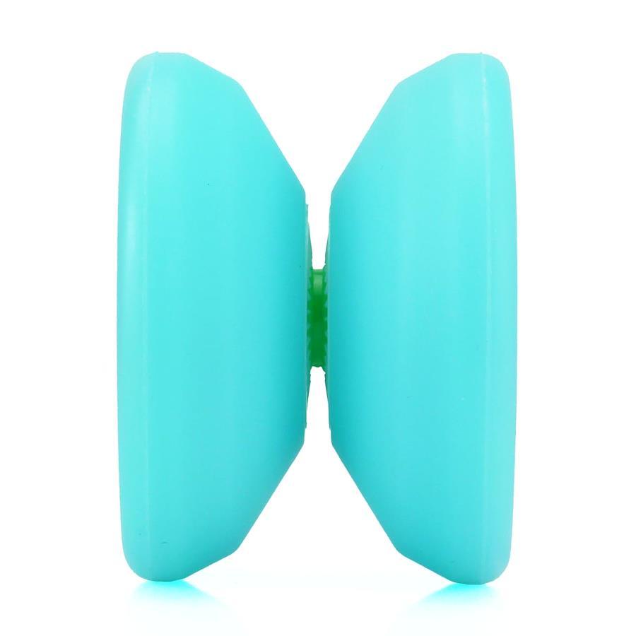 スピンガジェットヨーヨー形状をシリコンゴムで再現したユニークなモデル。ブルー系カラーです。 ヨーヨ―としての性能はあまり高くありませんが、下での空転、簡単な技を一技やって手に戻すといった基本的なヨーヨーとしての性能は確保しています。 ヨーヨーの常識を覆すやわらか素材!硬さが必要な最小限のナット周り、中心部のスペーサー周り以外のボディをシリコン化したことで業界一のシリコン化率となっています。 やわらかいヨーヨーにあったやわらかい投げ方で遊んでいただければと思います。スピガジPや過去の機種とは異なり素材の趣を楽しむためのヨーヨーで使いやすさなどは一切考慮しておりません。 トラピーズやブレインツイスターは余裕ですがヨーヨーの回転に頼って振り回そうとするとボディと干渉してすぐに回転が止まります。初心者の人にとっては気軽に上げ下げからスリープやアラウンドザ・ワールドなどで遊んでみてください。