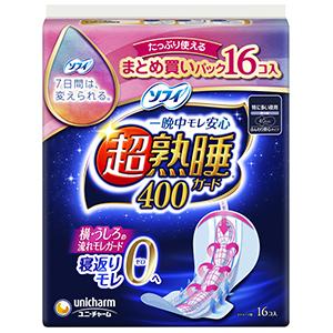 ■商品概要メーカー:ユニ・チャーム商品名:ソフィ 超熟睡ガード 400(16枚入)区分:医薬部外品内容量:16枚商品概要:せき止め構造で横・うしろの流れモレガードJANコード:4903111377671商品コード:213807128