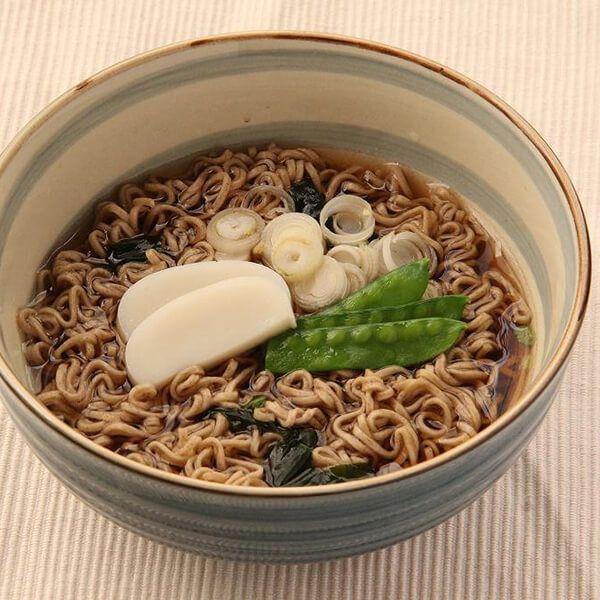 ■原材料名:油揚げめん(小麦粉(愛知)、そば粉(中国)、植物油脂(パーム油(東南アジア))、澱粉(タピオカ(タイ))、食塩(国産))、食塩(海水塩(メキシコ))、砂糖(北海道)、粉末醤油(大豆:遺伝子組換えでない(インド他海外))、乾燥わかめ(中国)、酵母エキス(国産他海外)、かつお節粉末(国産他海外)、昆布粉末(国産他海外)、麦芽エキス(イギリス)、乾燥ねぎ(中国)/酸化防止剤(ビタミンE)、(一部に小麦・そば・大豆を含む)