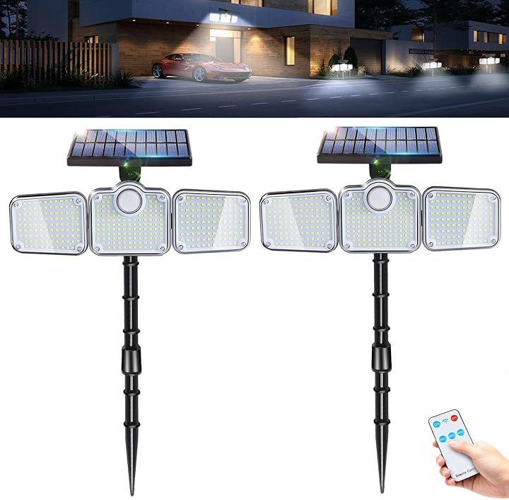 Solar Outdoor Light, 2-Way Recessed/Wall-Mounted Sensor Light, Ultra-Bright 321 LEDs, 3000 Lumens, 360° Lighting, Light/Motion Sensor, 3 Lighting Modes, Remote Control, 2400mAh Battery, IP65 Waterproof, Garden Light, 3-Sided Lighting, Daylight Color, Adjustable Angle, Night Light