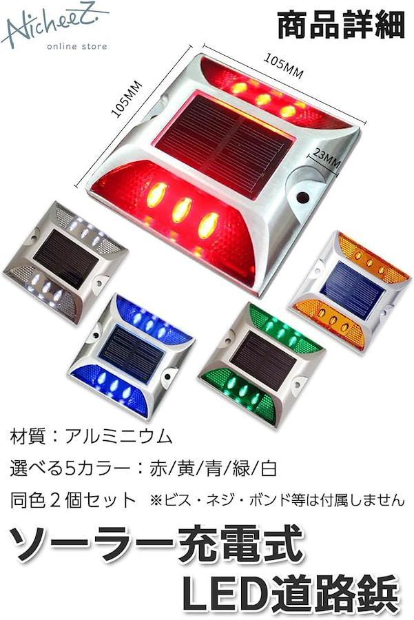 「商品内容」 ソーラー充電式LED道路鋲 材質:アルミニウム カラー:赤/黄/青/緑/白 サイズ:縦/約10.5cm 横/約10.5cm(ビス・ネジ・ボンド等は付属しません)