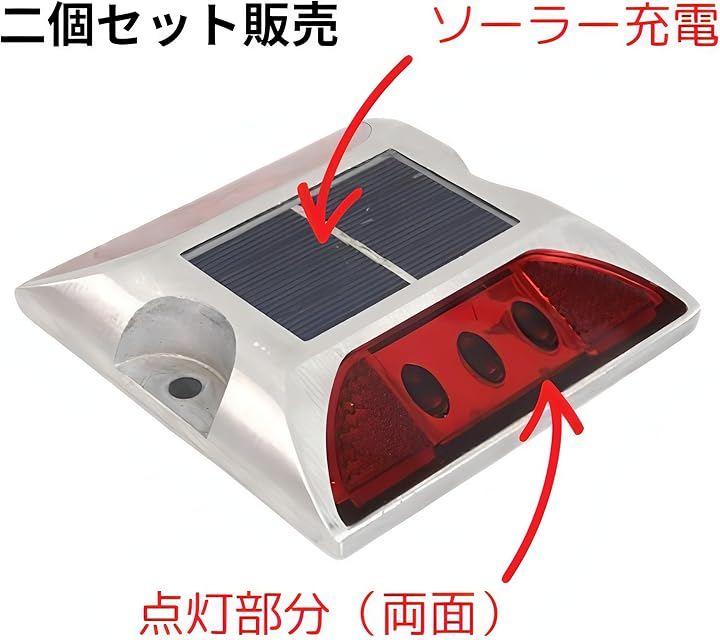 太陽光で充電するLEDソーラー道路鋲 2個セットです。