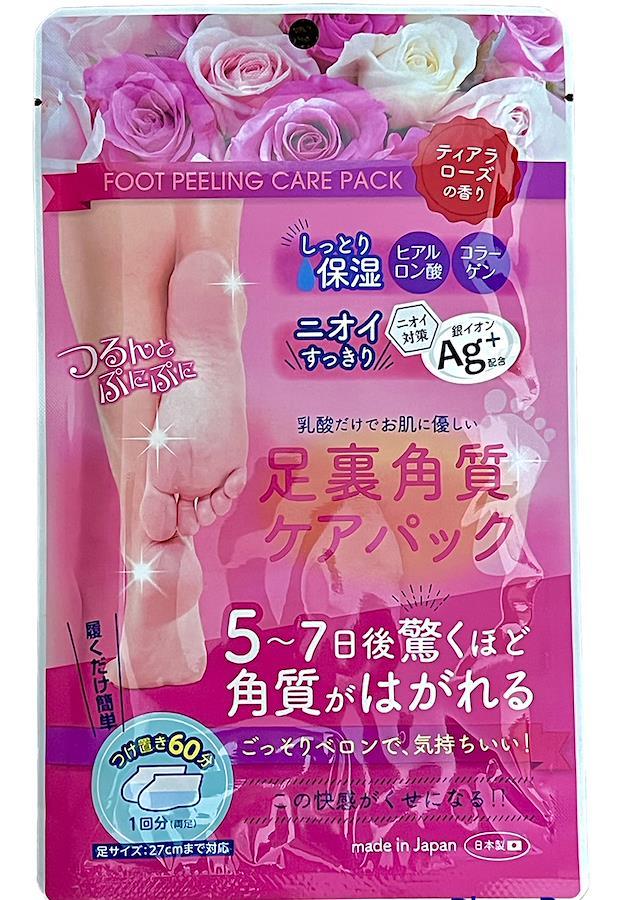 ★履くだけ簡単、1週間で驚くほど角質がはがれる足裏角質ケアパック!乳酸だけお肌に優しい成分にもこだわりぬいた角質ケアです。ごっそりベロンで気持ちいい!この快感がクセになる!*ヒアルロン酸・コラーゲン配合でしっとり保湿!*ティアラローズのほのかな香りでリラックス気分に!*銀イオンAg配合で角質だけでなく足裏のニオイ対策まで同時に行ってくれる優れものです。