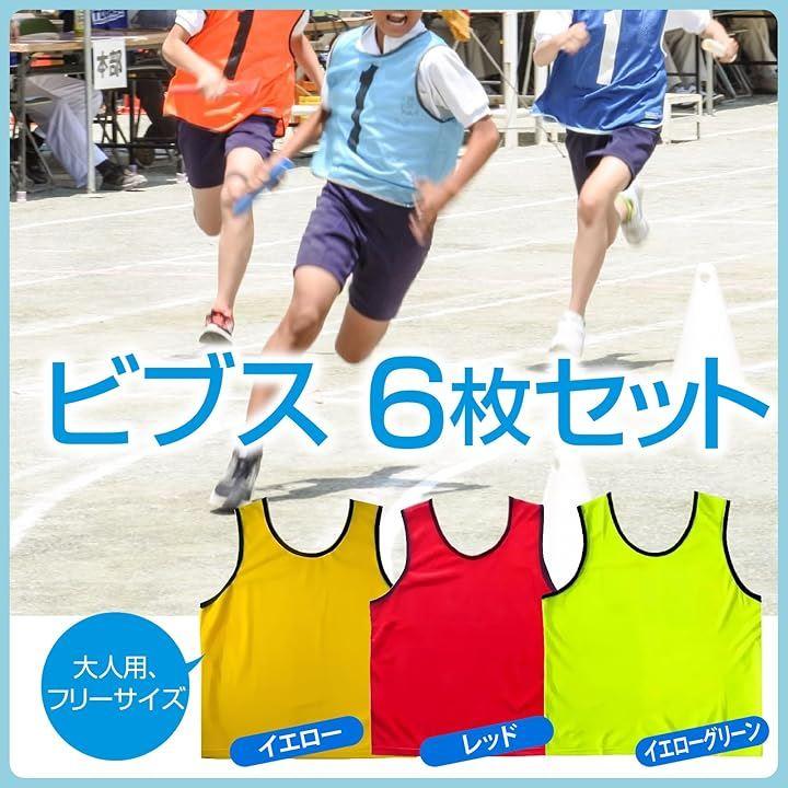 大人用、フリーサイズのビブスは、ユニフォームや普段着の上にかぶって着用するのみ。