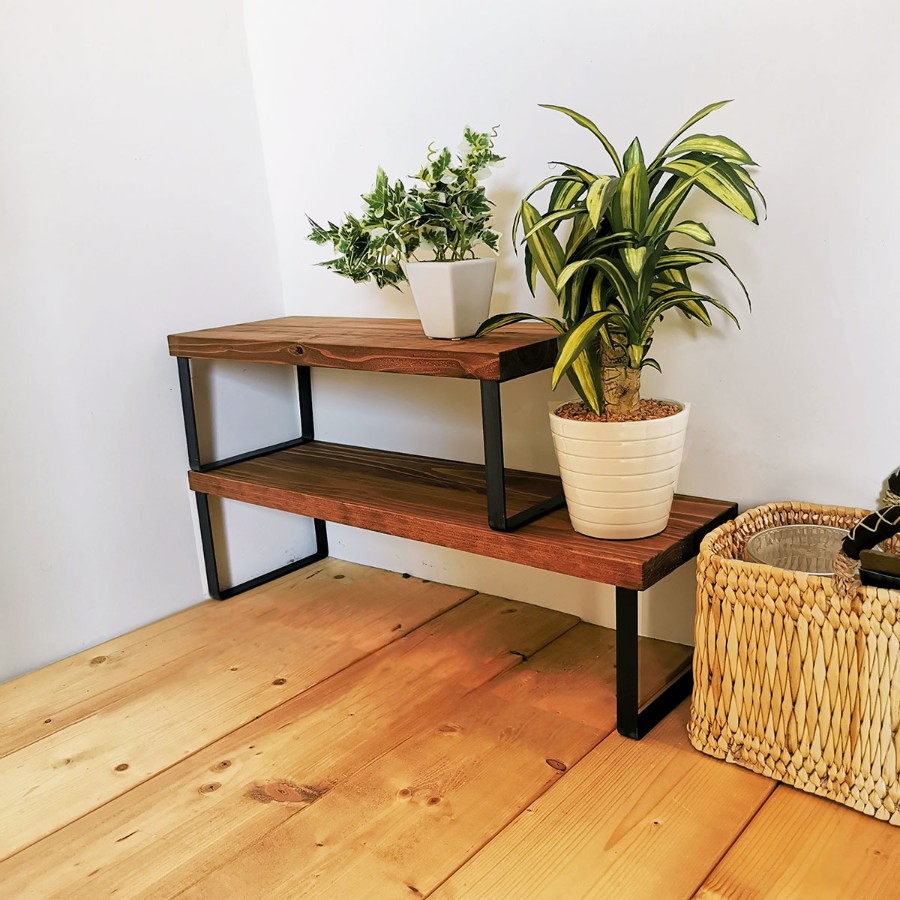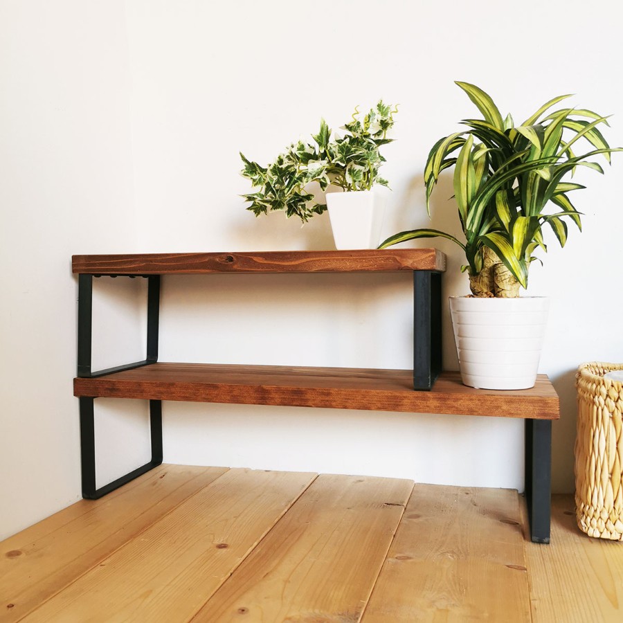 --------------------------------------------------------------------------------------■商品仕様・サイズ無垢材とアイアンのシェルフ ブラウン Mサイズ 47cmサイズ :横 約47cm×高 約16cm※×奥行 約19cm(※高さは、床(接地面)から天板上までの高さです。)天板 : 無垢材(24mm厚 / オイル・ワックス仕上げ)脚、ネジ:鉄(焼き付け塗装、黒メッキ)