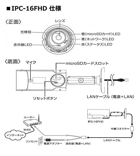 ・屋外用 防水防塵保護等級IP66 200万画素+広角レンズ カメラ周辺の明るさを感知し、自動で昼間・夜間モードが切り替わります。 動体検知/アラーム・お知らせ機能 microSDカードやNASに繰り返し、録画・再生ができます。録画映像はタブレット、スマホやWindowsパソコンから遠隔操作で視聴できます。 スケジュール録画機能 再生画面の分割表示機能