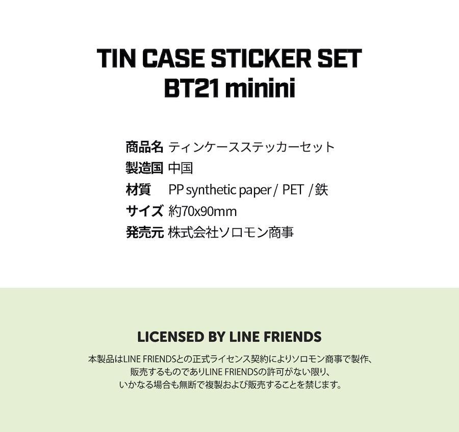 ●商品名:BT21 minini ティンケースステッカーセット(12枚入り)●モデル名:TCS-BT21-M-KY/RJ/SK/MG/CM/TT/CK●製造国:中国●内容:ステッカー(12枚入り)●素材:PP synthetic paper / PET / 鉄●サイズ:約70x90(mm)●お問い合わせ:[email protected]●発売元:株式会社ソロモン商事●発売日: 2022/09/09