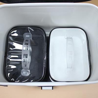 ・防水性抜群、小物も置けるトレー型ハード素材の上部かぶせフタ。・サビに強いステンレスフレーム内臓。・握りやすく便利な合体ハンドル。専用小物ケース(別売り)がピッタリ収納できる!・脱着簡単、ショルダーベルト(実用新案パーツ)。・仕分け収納に便利なインナートレー付き。※インナーケースは別売りとなります。※掲載している商品の画像は代表画像を表示している場合があります。また実際と色が違って見える場合があります。あらかじめご了承ください。 サイズ(cm) 底面の長辺 底面の短辺 高さ 上部の長辺 上部の短辺 36cm 34 22 26 36 25 40cm 38 25 28 40 27.5 ショルダータイプ ホワイト×ブラック ※実物と色が違って見える場合があります。あらかじめご了承下さい。
