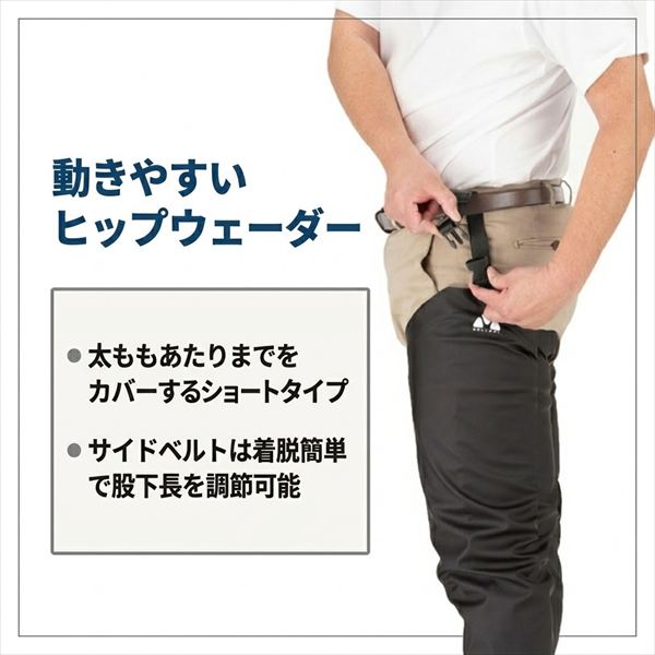 釣り・農業・水場の仕事をするなら必須アイテム!機動性の高いヒップ型!足から太ももまでを覆う部分に防水性・撥水性の高いPVC生地が使われており、防水性はバッチリ!!水漏れしにくい加工方法で作られております。岸からでは不可能なキャストも水中に入り込んで、最適なコース・立ち位置でフィッシングを楽しめます。サイドベルトで着脱が簡単! サイズ:3L 靴サイズ(cm):28.0-28.5 付属品:補修用布地 ※実物と色が違って見える場合があります。あらかじめご了承下さい。