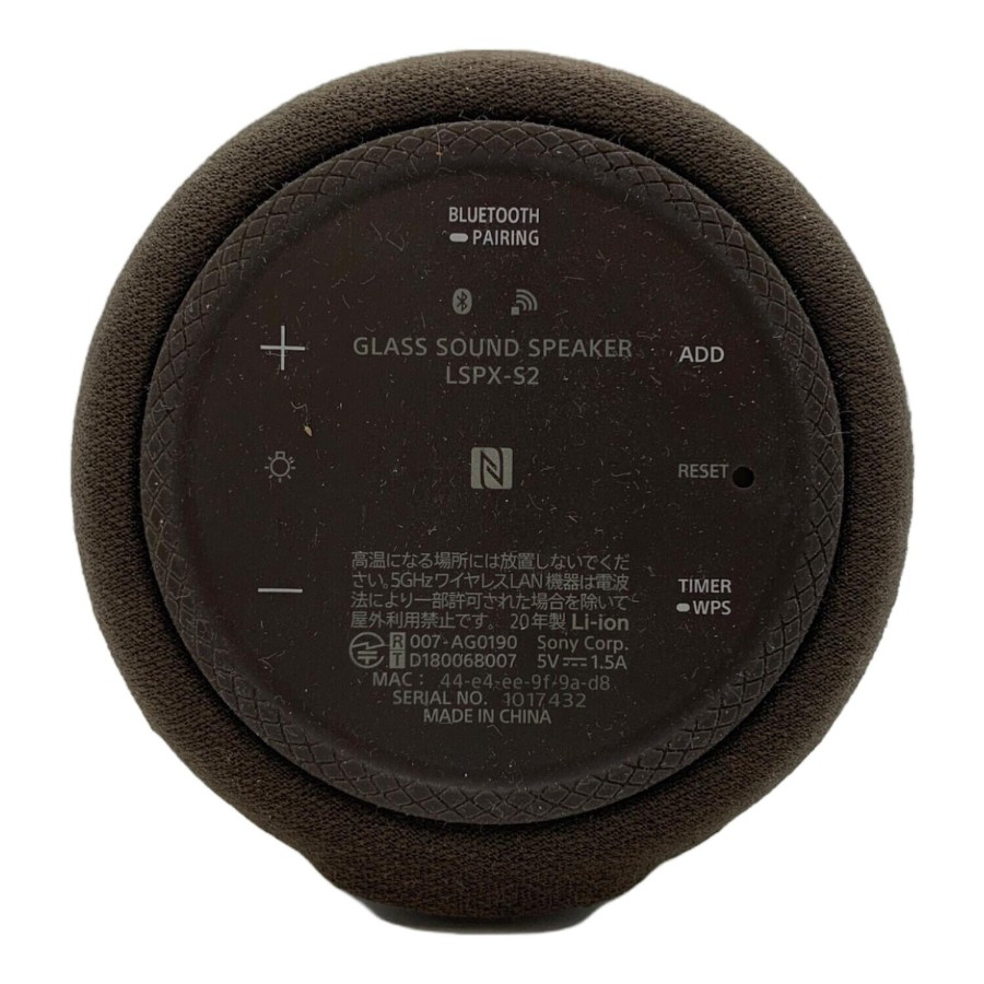 こちらの商品はキズやヨゴレ、劣化などが見受けられます。また店頭にて展示販売を行っている為、記載に無いキズ、ヨゴレ、劣化などが見受けられる場合がございます。■商品説明ブランド :SONY/ソニーアイテム名:グラスサウンドスピーカー型番 :LSPX-S2製造国 :中国製年式 :2020年製再生周波数特性:60Hz-40,000Hz消費電力:約11W(内蔵電池充電中およびイルミネーション輝度最大時)約0.2W(通常スタンバイ時)※非常にデリケートな面を含むお品物となりますため、お客様のもとでメンテナンスや調整などが必要な場合もございます。当社では調整、または費用の負担などはいたしかねますため、中古品という点をご理解の上、ご検討くださいますようお願いいたします。※主観では判断の難しいような僅かなノイズや微細な音量バランスの乱れなどに関しては、中古品という特性上保証致しかねますため予めご了承ください。■付属品充電器・ケース付■その他必ず、商品注文される前に店舗情報に記載している注意事項をご確認ください。