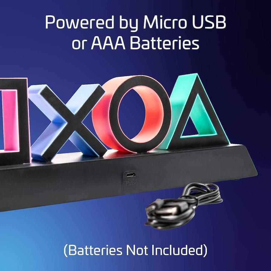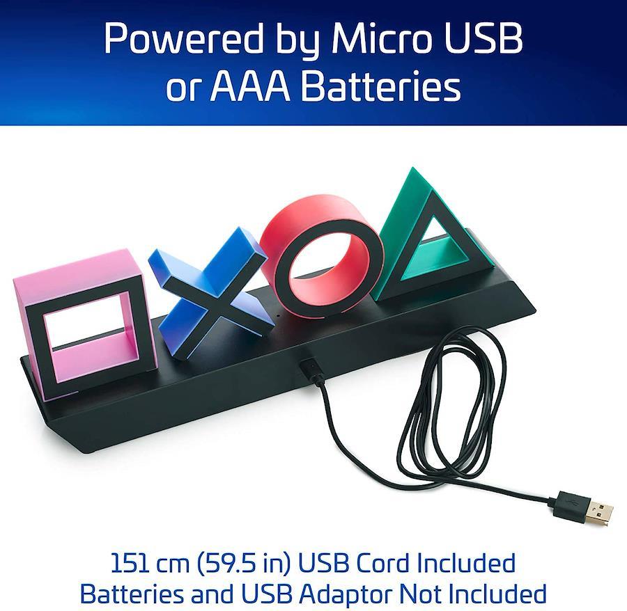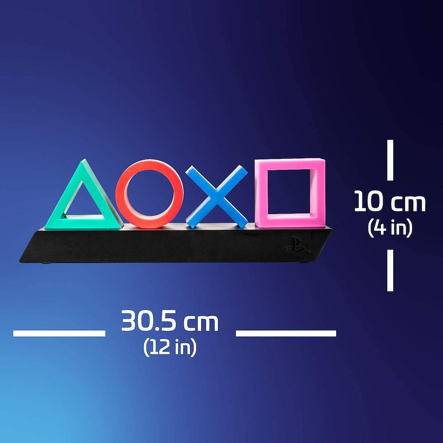 公式ライセンス商品 Paladone社製 Playstation プレイステーション アイコン ライト3つのモード搭載 スタンダードモード、カラーフェージングモード(4つのアイコンが順番に点滅します)、音楽に反応してリズムに合わせて光るミュージックリアクティブモード(音楽が流れていない状態でも常にランダムで点滅しています)シーンに合わせて選ぶことができます。付属のUSBケーブルもしくは単四電池×3(付属しておりません)で可動します。サイズ:幅30cm×高さ10cm×奥行6cm