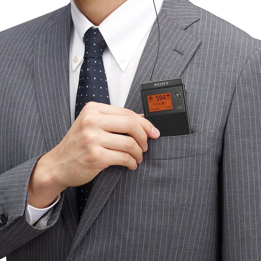 FM/AM放送の2バンド対応。巻き取り式イヤーレシーバー採用でコンパクト&最長100時間使用可能なスタミナ名刺サイズラジオ