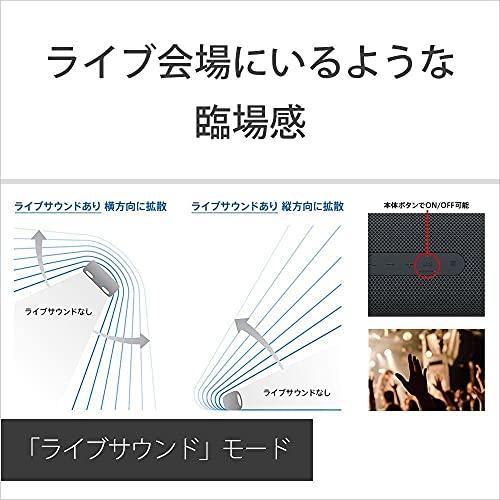 3営業日以内に発送≪新品未開封品≫:■X-Balanced Speaker Unitにより広がる高音質と迫力の重低音:新開発の約48×70mm口径の非対称形フルレンジスピーカーユニット「X-Balanced Speaker Unit」を搭載。コンパクトボディーながら高音質の広がり、高い音圧と力強い低音を実現。さらに、低音を強化する「EXTRA BASS」モードを搭載。サイズを超えた重低音を楽しめます。また、高音質デジタルアンプ技術「S-Master」や、圧縮された音源で失われがちな高音域を効果的に補完する「DSEE」、推奨サウンド設定を実現する「ClearAudio+」など、ソニーが培った先進の高音質技術も投入。ソニーならではの高音質で大好きな音楽をより楽しむことができます。■X-Balanced Speaker Unitの効果:スピーカー本体はコンパクトなまま、スピーカーユニットの形を変えることでユニットサイズを最大化を実現。さらに、ソニー独自の非対称形スピーカーユニットの開発により、音の広がり・大音圧・歪みの少ないクリアな音を実現。■迫力の重低音を体感「デュアルパッシブラジエーター」:低域を効果的に増強する「パッシブラジエーター」を2つ配置した「デュアル・パッシブラジエーター方式」を採用。X-Balanced Speaker Unitの採用に合わせ、本体の前後から両サイドへ配置を変えることで従来モデルよりもパッシブラジエーターの面積を拡大。更なるキレと存在感のある低音域を実現。さらに、DSP(デジタルシグナルプロセッサー)の低域増強機能により中・小音量時にも音楽を心地よく聞けるように設計されています。音量ごとに低域、高域のブースト帯域や量を変えるため、屋内や夜間などに音量を下げた状態で音楽を再生しても、