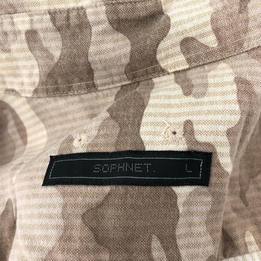 【管理番号】02w10975【ブランド】ソフネット(SOPHNET.)【型番】SOPH-90011【対象】メンズ【カラー】ブラウン【モデル】総柄長袖シャツ【サイズ】ケース:約mm表記サイズ:EUL肩幅:約44cm着丈:約69cm身幅:約54.5cm袖丈:約59cm【素材】13791【付属品】なし■コンディション・状態【状態ランク】Bシワ、タバコ臭など多少使用感があります。