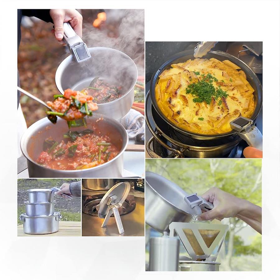SOTO Handle Potholders for a firm grip (for pots, strainers, frying pans) Magnets make it easy to open and close lids (easy with little force) Lids can be placed upright (space-saving) Silver GORA Lifter ST-9501
