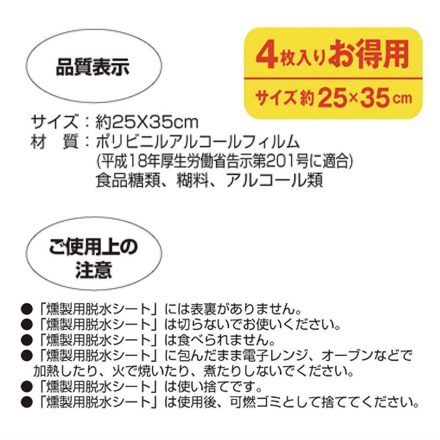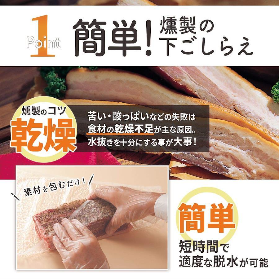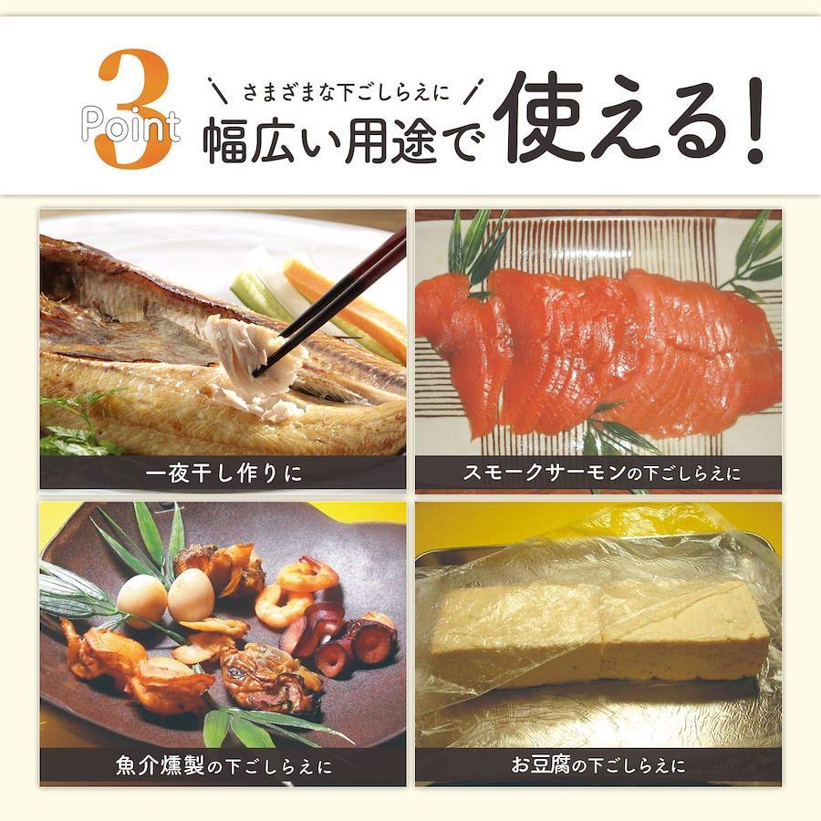 ●燻製の下処理を簡単にする脱水用シート。●シートに包んで冷蔵庫に置くだけ。効率良く短時間で食材の水抜きができる。●余分な水分、臭みを取り除き、鮮度と風味を保つ。●一夜干し作り、燻製や豆腐の下ごしらえに幅広い用途でお使い下さい。