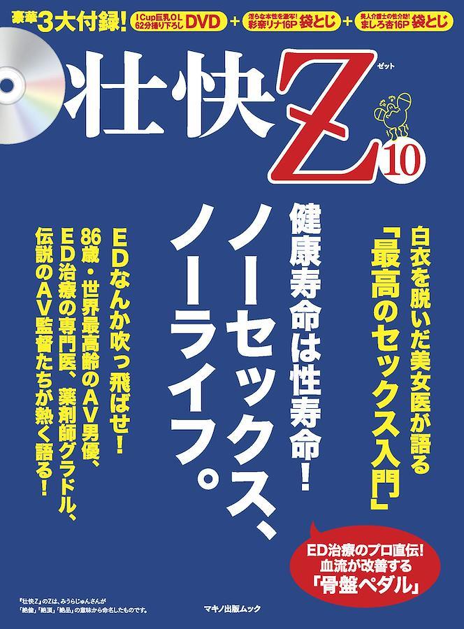 お待んたせ、いたしました!健康雑誌のパイオニア『壮快』特別編集『壮快Z』の第10弾が〝マンを持して〟堂々刊行!中高年のセックスに、真っ向から切り込みます!大好評のDVD付録(62分)+袋とじは、バストがなんと100センチIカップ(Gよりデカい!)のAV女優・彩奈リナがOLに扮したコスチュームプレイ。身悶える熟女が、淫靡な情事に誘います。巻頭では、産婦人科専門医・高橋怜奈が、またまた白衣を脱いだ! 「最高のセックス」を熱く語ります。薬剤師もイキますよ!優木まおみの再来の呼び名も高い才媛・福井セリナが萎え気味な我らご同輩を元気づけてくれます。 人気記事「バ○アグラ買い方指南」は、ますますパワーアップして第3弾の取材を敢行!ED解消術をあの手この手で指南します。あの全裸監督のモデルで昭和最後のエロ事師・ 村西とおるも再登場!そして誰もが〝お世話になりました〟伝説の女優・沙羅樹は今 愉快・痛快・奇々怪々の『壮快Z』vol.10をぜひご覧ください!!