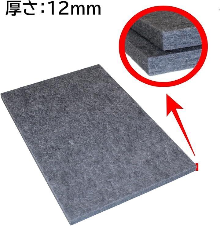 この吸音硬質フェルトボードはサイズは大350x250x12(mm) または小300x200x12(mm) のポリエステルフェルトで、弾力性もあり特に厚さ12mmと極厚で、菱目打ちやカービング等の防音・防振対策に適しています。